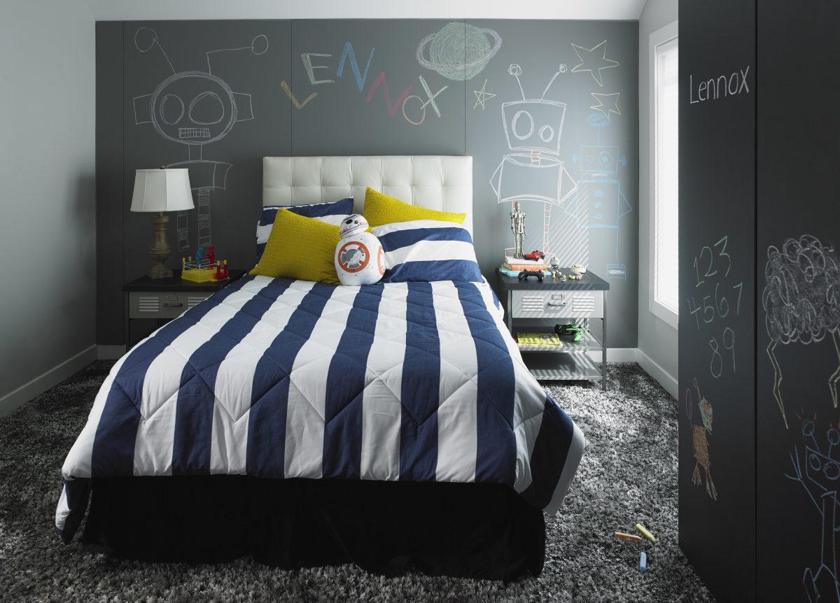 Writable surfaces such as chalkboard paint or large marker boards also let kids customize their room.