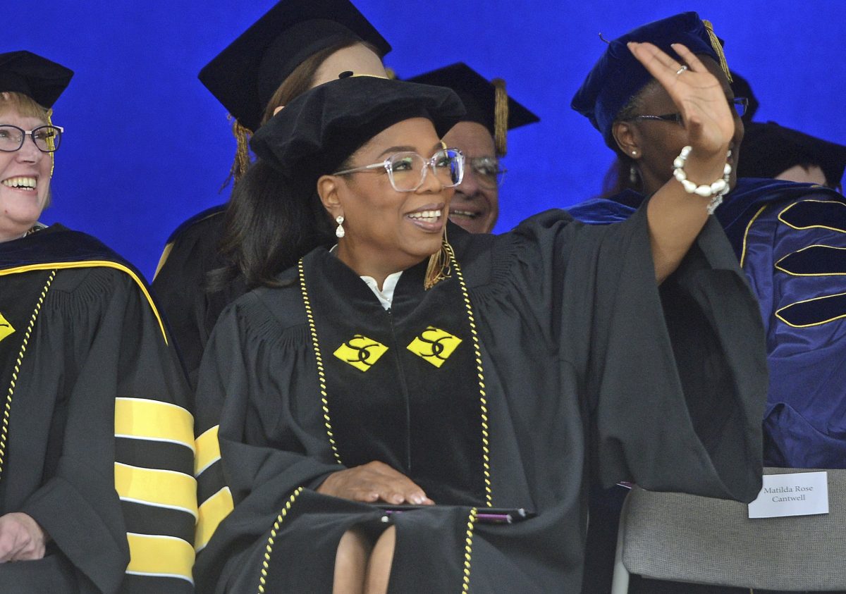 BOSTON – Oprah Winfrey told students to live with purpose. President Donald Trump said to ignore the naysayers. Will Ferrell sang some Whitney Houston.