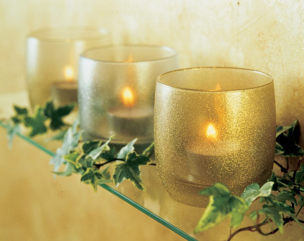 She uses metallic and glittery spray paint to add personalized flair. If you’re on a budget or are fairly crafty, this is a good option. Jazz up stuff you already have like terra cotta pots, tea light holders, candlesticks, picture frames and serving trays. Valspar has a line of paints that stick to most materials, and come in both opaque and translucent finishes. (www.valspar.com )