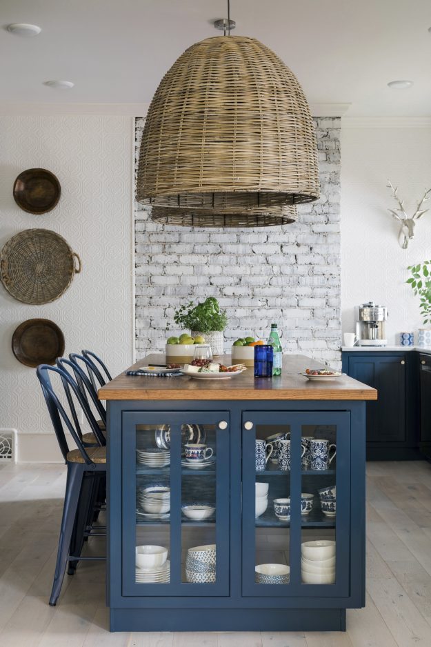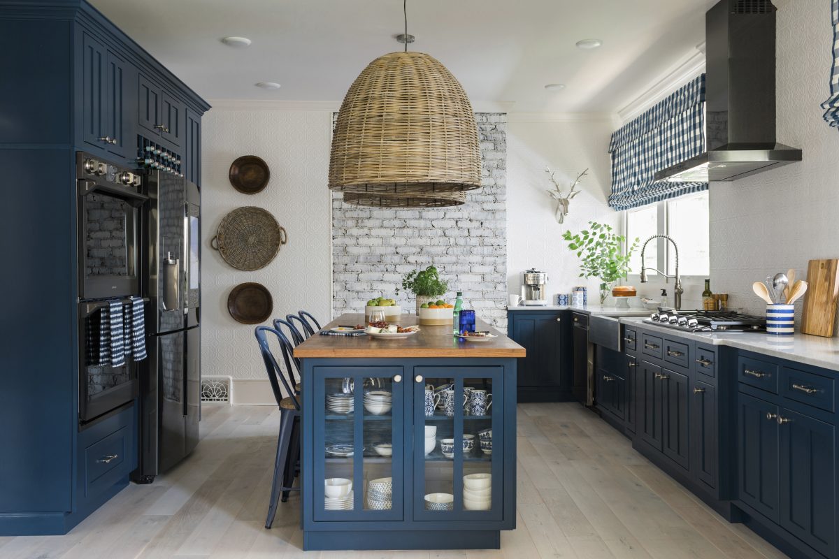 Designer Brian Patrick Flynn recently filled the kitchen of HGTV’s new “Urban Oasis” giveaway house with bright blue cabinets and a blue island in the center of the room. This cheerful color fills the room with energy in a way that traditional stained-wood cabinets couldn’t.