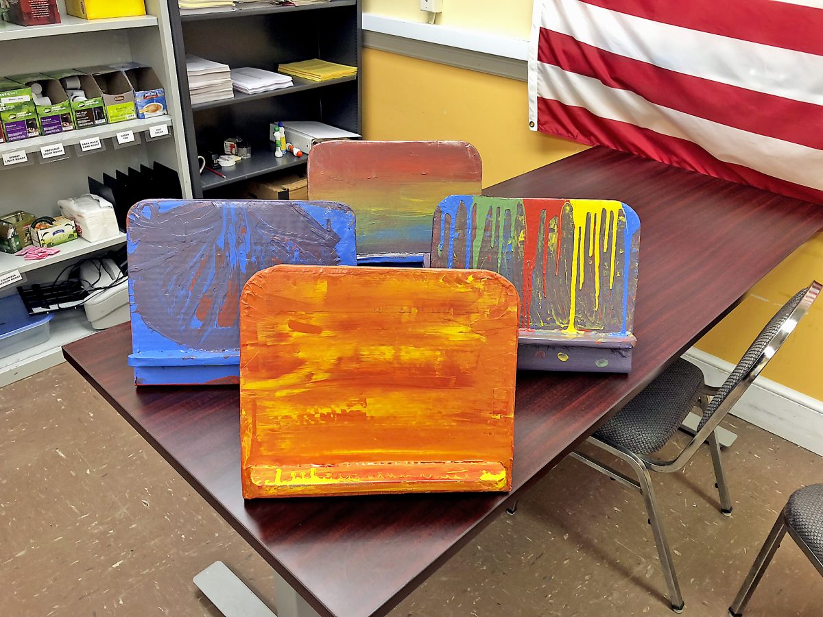 Bookstands, pictured above, and stools were created for Intermediate Unit 1 students.