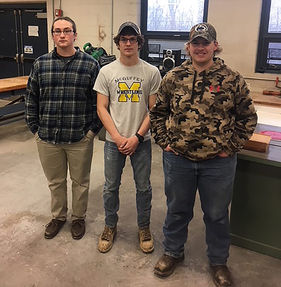 Agriculture Mechanics CDE Individuals 2018 included, first place Seth Meighen from McGuffey, right; second place Tyler Maxwell from McGuffey, middle; and third place Cody Oravetz from Trinity, left