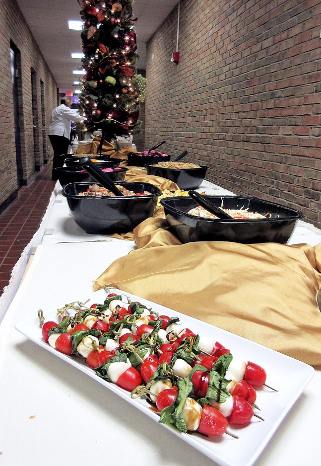 A caprese salad was one of many dishes on the annual Christmas buffet that ran the full length of a hallway at the Greene County Career and Technology Center.
