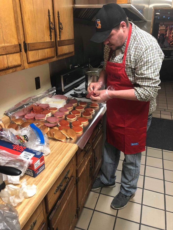 Chuck Wolfe of Graysville prepares sandwiches for his fellow members of the Fraternal Order of Eagles in Waynesburg following a December 2018 meeting.