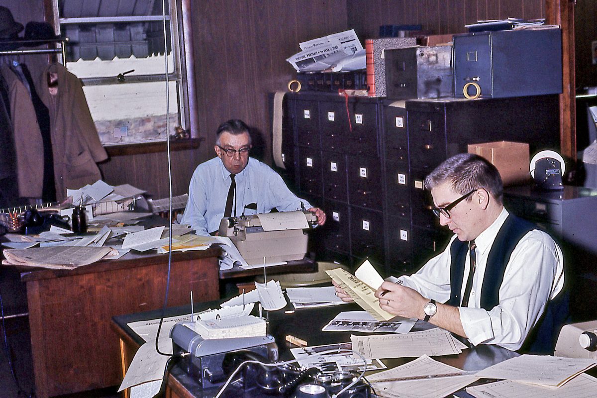 The earliest information she received so far is a set of photos and newspaper clippings from 1945, sent to her by the granddaughters of the Catterall family. When Charles McKinley first arrived at the paper in 1949, Walter Catterall was business manager and Charles Catterall was head of circulation.