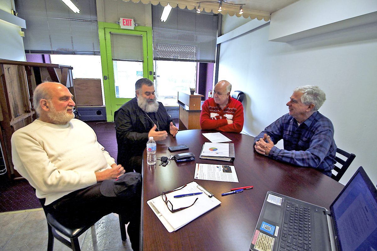 From left, George DiLeo, the Rev. George L. Livanos, Mayor David Rhome and James O’Brien hope the coffee shop will become a place of refuge for those with addictions. Ministers will be available to meet with those in need during business hours.