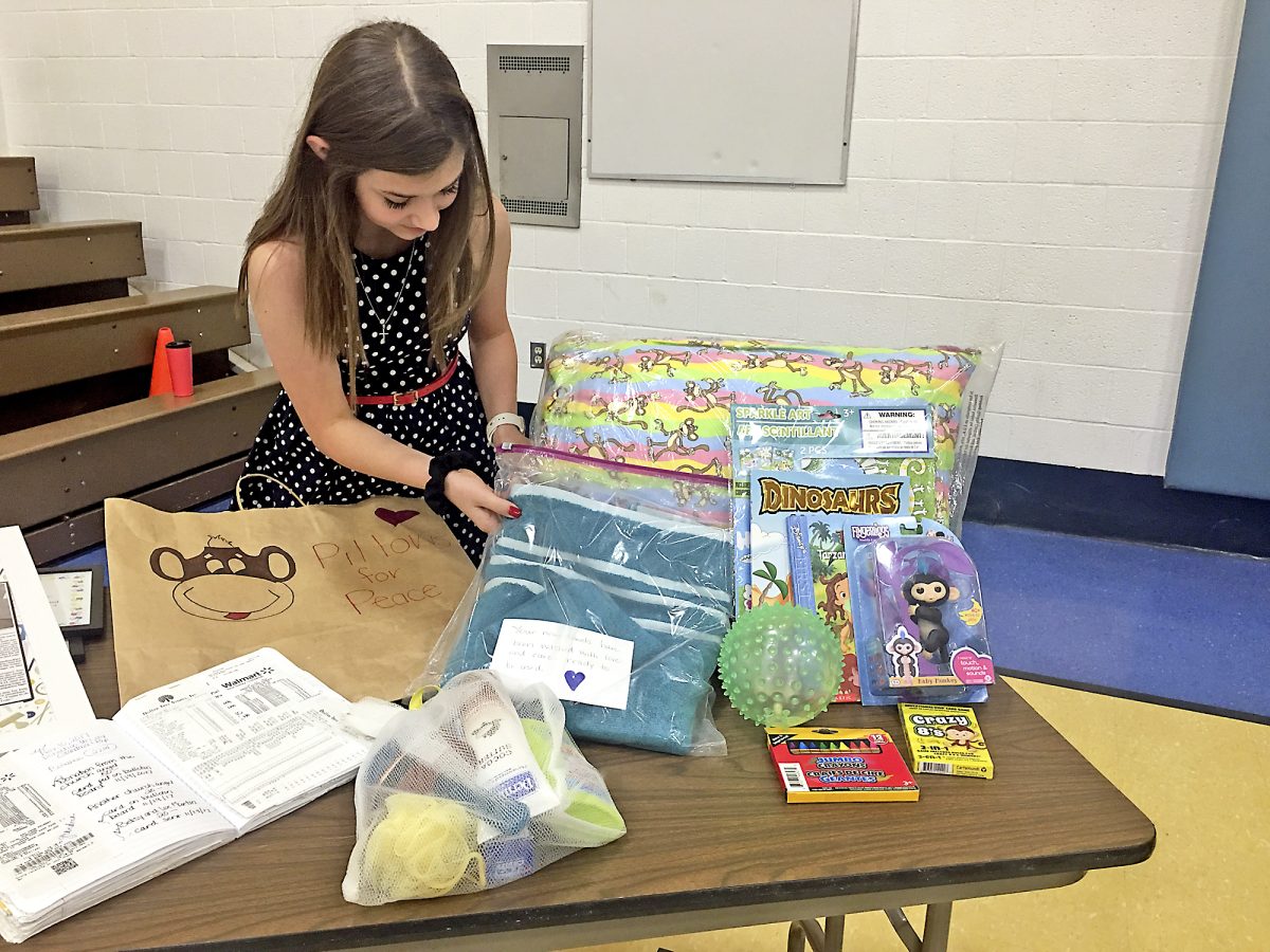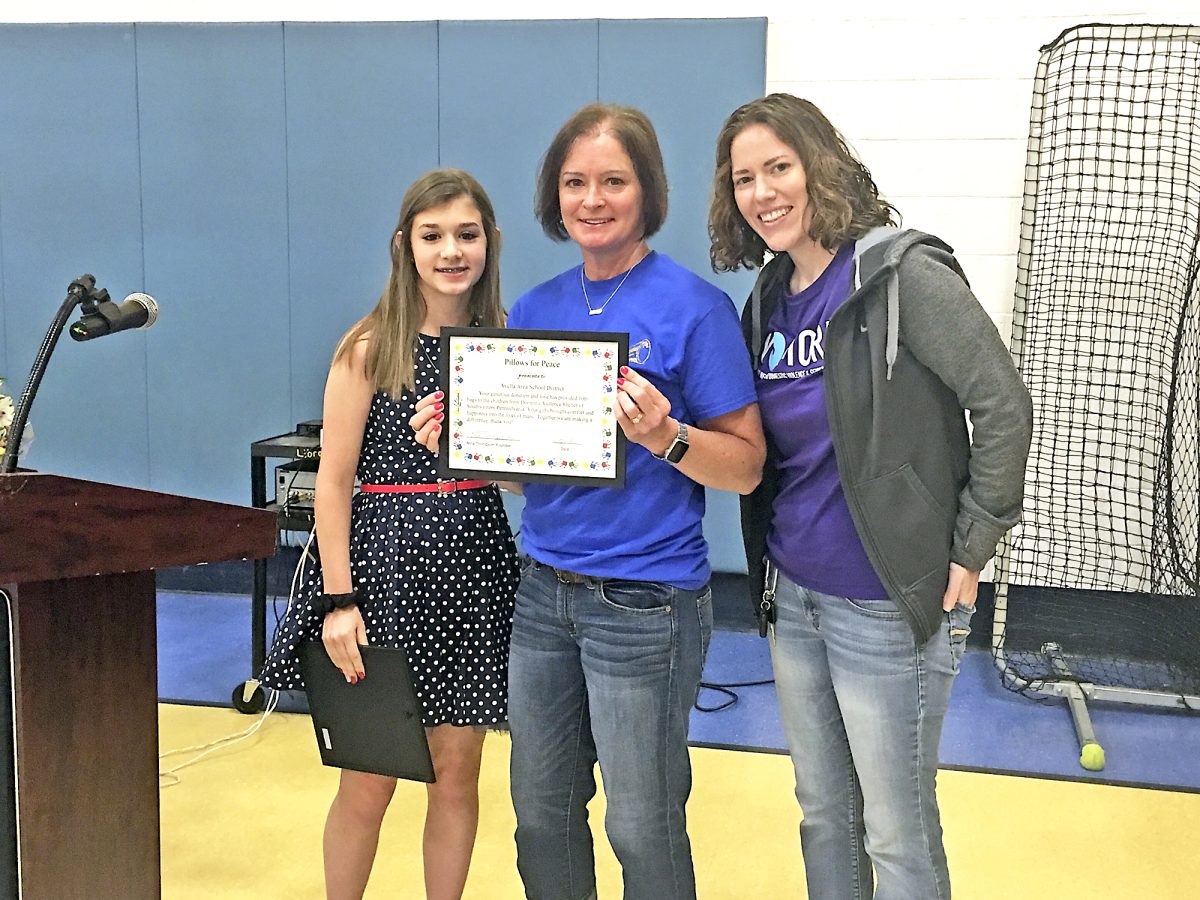 Nina Thompson, 13, started collecting handmade pillowcases, pillows, toiletries and toys for the women’s shelter run by Domestic Violence Services of Southwestern Pennsylvania in 2016. Avella Elementary students and staff collected enough items to donate 125 care packages to the shelter.
