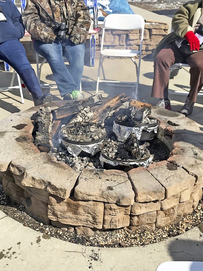Dutch oven cooking was our last class of the trip. The snow had mostly melted, but the wind still blew cold air and we were going to be cooking outside over a campfire.