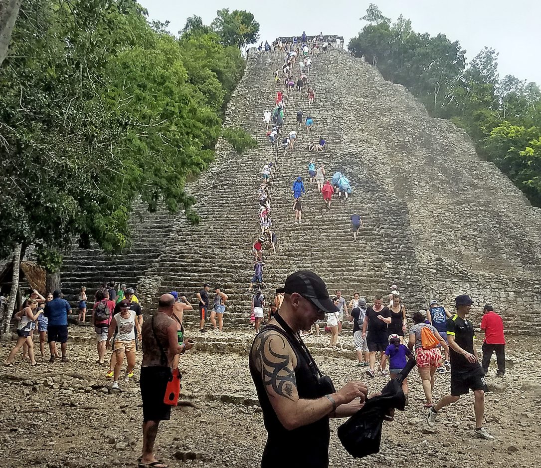 Later came a delicious lunch before exploring the Mayan ruins at nearby Coba. These are lesser known and less excavated than other ruin sites but equally as impressive. We scaled the 130 steps to the top of the tallest Mayan temple in Mexico (albeit in the pouring rain). If you want to make the trek, act quickly as the government will soon close off the steps to climbers to keep them from crumbling.