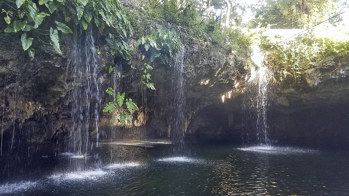 One of the best parts of this excursion was a cool dip and snorkeling in a cenote, one of the thousands of limestone sinkholes filled with fresh water that dot the countryside here. These underwater rivers run for miles beneath the Yucatan weaving in and out of caves lined with stalagtites.