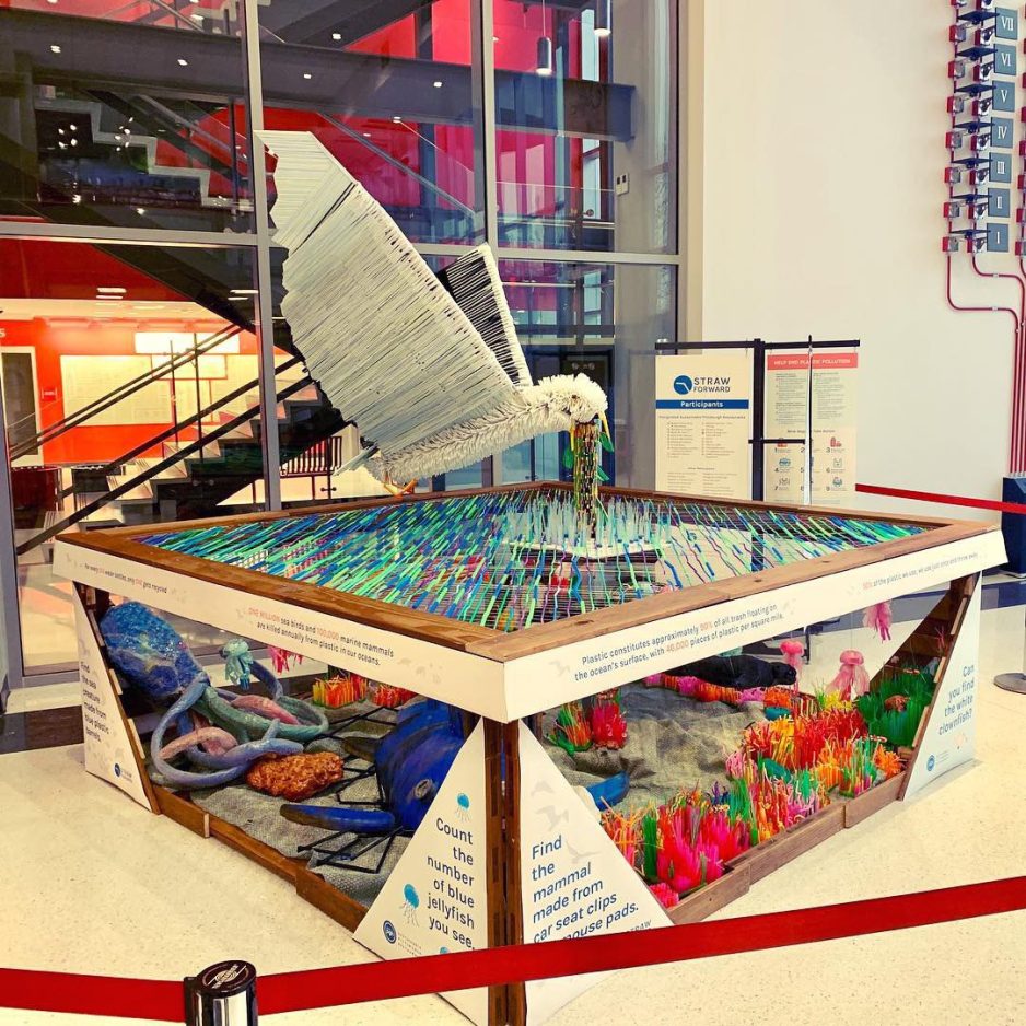 That’s the inspiration behind an art installation that is at the Carnegie Science Center in Pittsburgh through Feb. 15. “Straw Forward” depicts aquatic scenes constructed from more than 25,000 plastic straws that were collected from 37 Pittsburgh-area businesses, restaurants and nonprofit enterprises between June and October of last year. Along with the plastic straws, the installation also includes plastic items that were fished out of the Allegheny River and other repurposed materials.