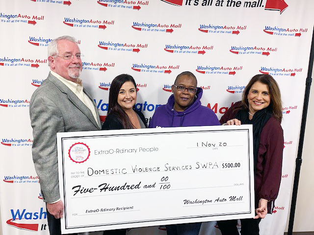 The award is underwritten by Washington Auto Mall, which will make a $500 donation to Domestic Violence Services of Southwestern Pennsylvania in Kelley’s name.
