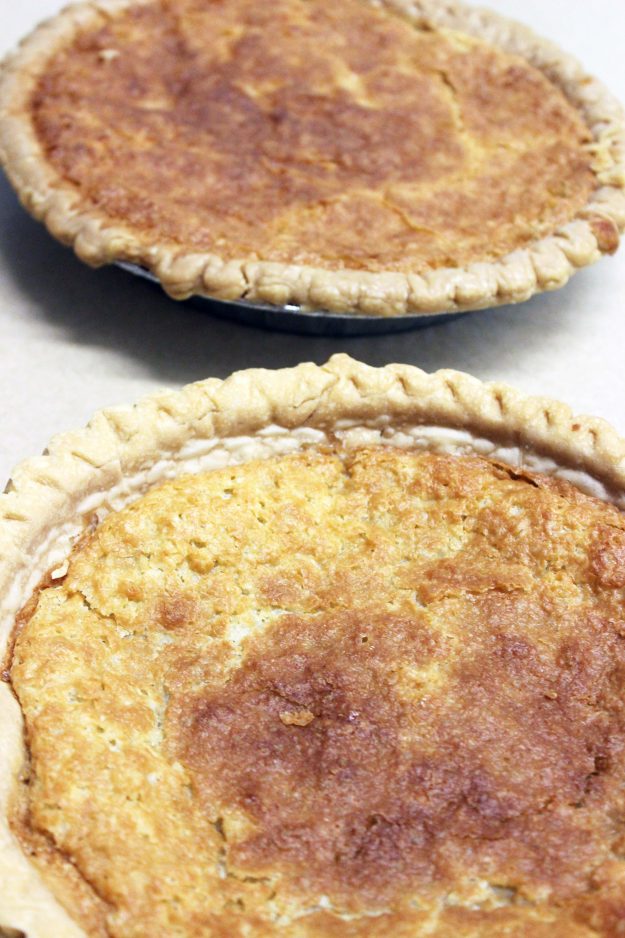 Sift flour, salt, and baking powder. Cut in lard and process in food processor until a sandy consistency. In a separate bowl, mix egg, vinegar and ice water. Slowly add the liquid to the flour mixture. Don’t over process. Once the dough comes together, remove from bowl, cut in half, shape into a ball and wrap in plastic. Refrigerate for at least 1 hour.