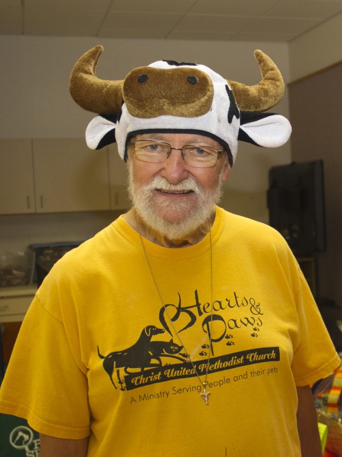 Getting into the day’s spirit is Joe Hirsch of Heart and Paws Ministry.