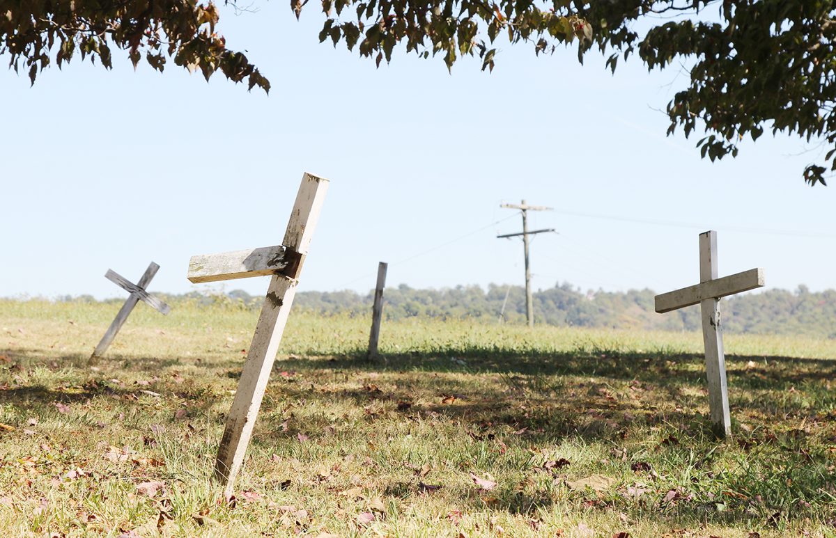 The cemetery has only three headstones, though Blystone estimates over 1,000 people are buried there.