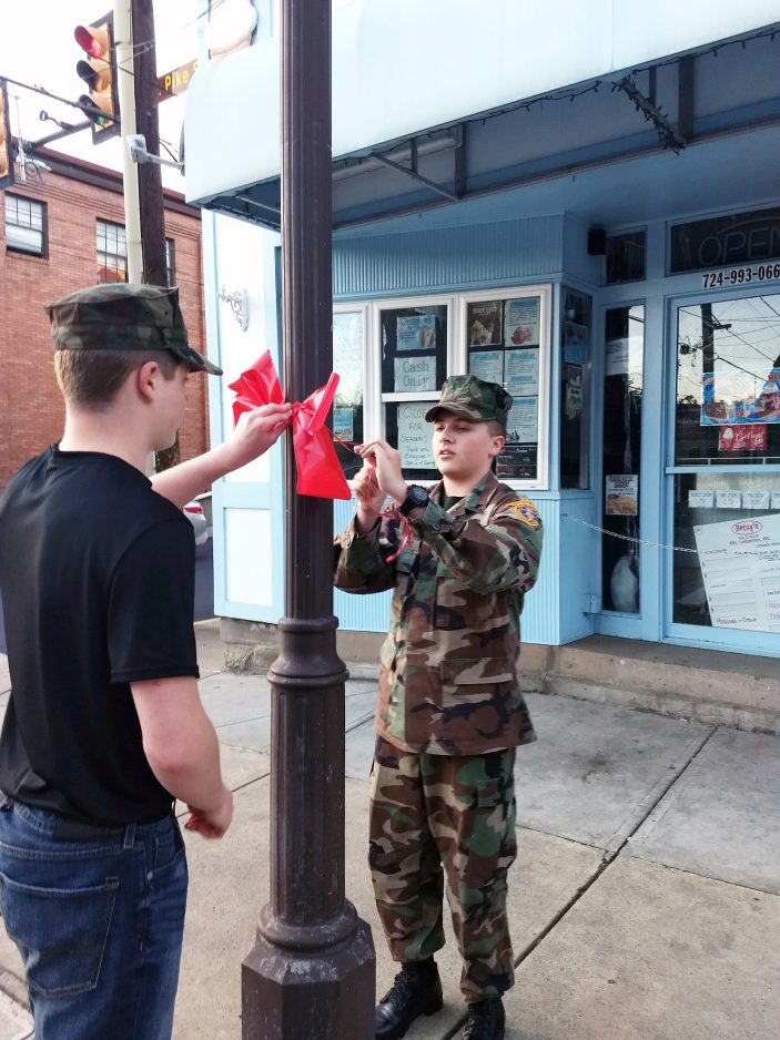 That’s why they participate in the Red Ribbon Week, which is a national campaign started in 1985 to promote drug-free lifestyles for youth. They walked Pike Street in Canonsburg last week placing red ribbons on light poles to spread awareness of the campaign that runs through Thursday.