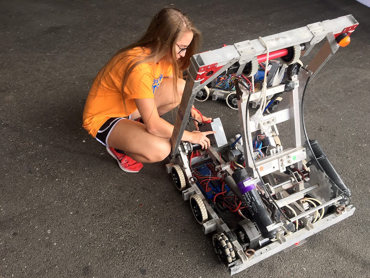 On the lower level, Spencer Putnam of Washington was practicing one of her specialties – beyond academics, that is. She was maneuvering robots along with other members of her Titanium Titans robotics team, based in Washington County.
