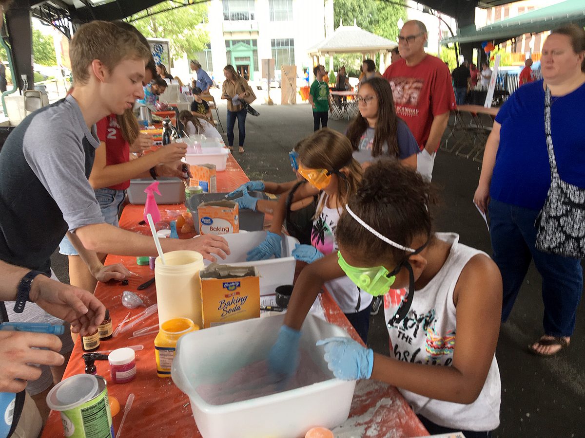 “We’re trying to inspire and educate, trying to get kids interested in STEM,” said Christine Coyle, coordinator of the festival and owner of What About Steam LLC. Coyle, a Washington resident, said she and her committee worked on this endeavor for about a year and completed it “a little over” their $10,000 budget. Coyle said the pavilion “is a nice central space,” so the group went for it.