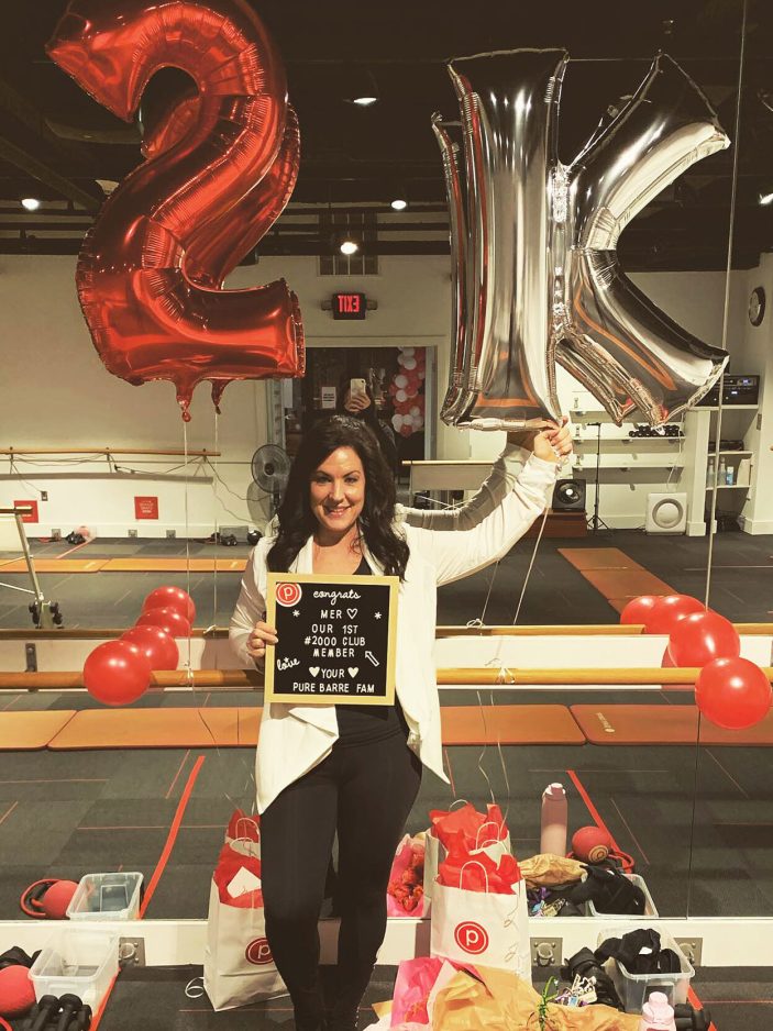 Pure Barre encourages other clients to be as steadfast in their routines by setting milestones in terms of numbers of workout sessions, and Morgan is the first member of the “2,000 Club.”