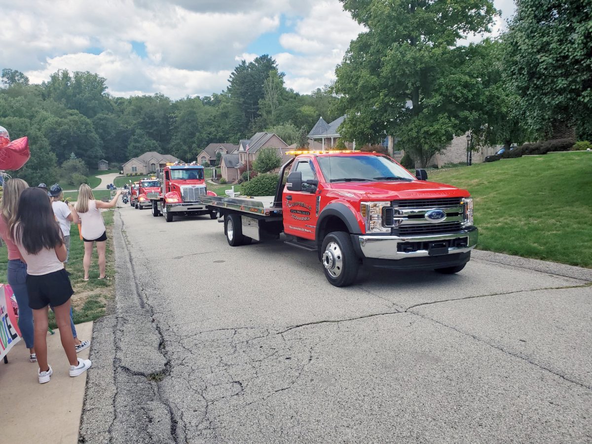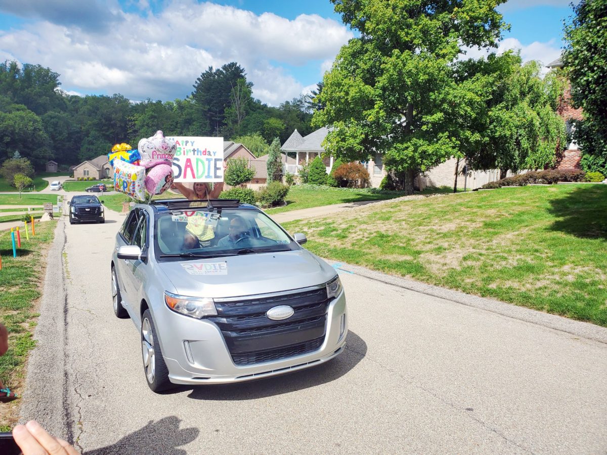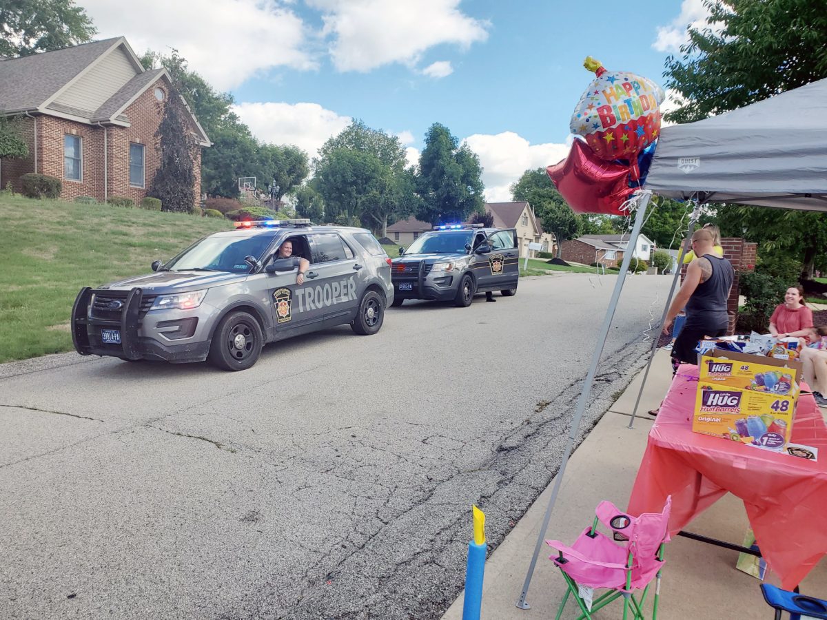 Family, friends and community members recently held an Aug. 30 parade for Houston resident Sadie Stockdale’s fourth birthday. Sixty-three vehicles, including fire trucks from three departments, state, local and city of Pittsburgh police, tow trucks and Red and Blue Knights motorcycle clubs all gathered to shout, honk and wave at this excited toddler.