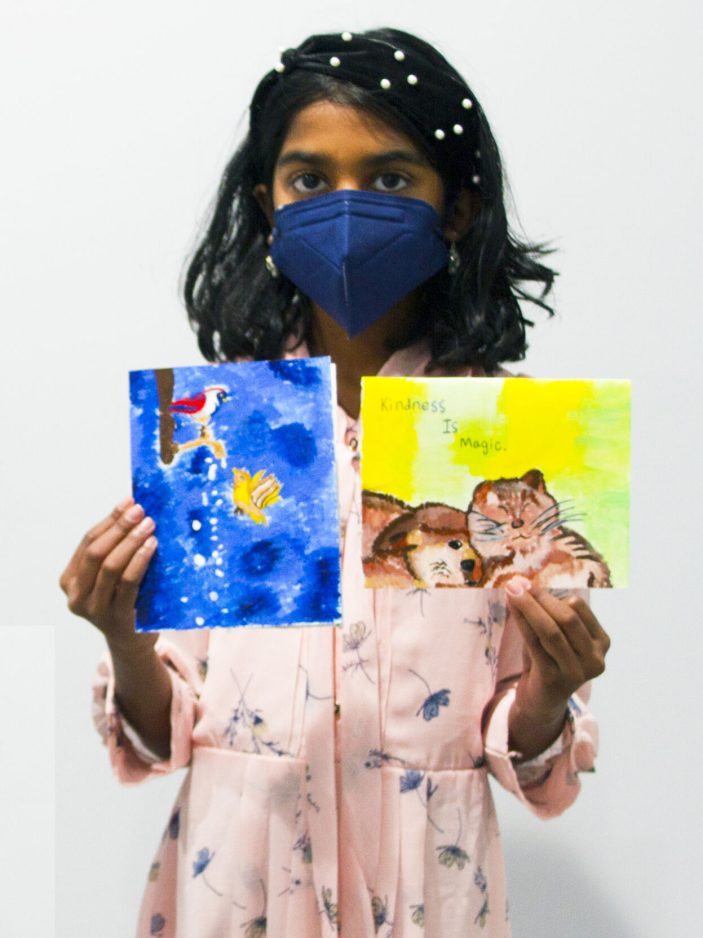 The theme for the project, which the students completed in Priya’s South Fayette Township studio, is: “If my card made you smile, pass on the love!”