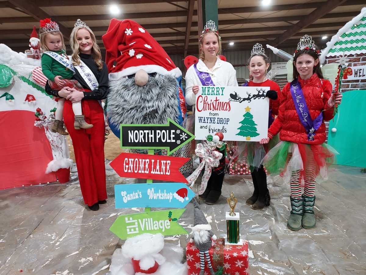 Miss Rain Day Emily Bennett joins Santa and Mrs. Claus in waving to those attending the Greene County Chamber of Commerce’s Revere Christmas Parade float contest at the county fairgrounds on Dec. 4.