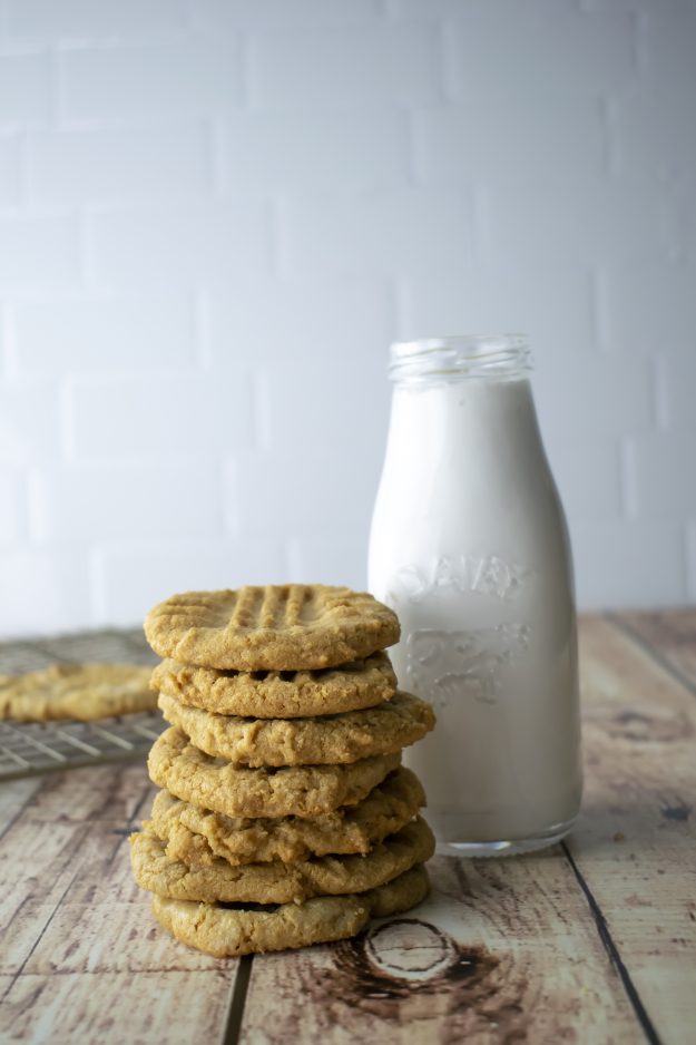These Flourless Peanut Butter Cookies require only three everyday ingredients that can be prepped and baked in less than half an hour. Just preheat the oven; mix the peanut butter, sugar and one egg; roll into individual balls then flatten on a cookie sheet and bake 10 minutes.