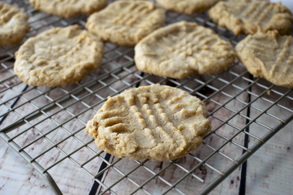 Using small cookie scoop, place dough balls on parchment paper-lined cookie sheet. Flatten with fork to make traditional peanut butter cookie crisscross pattern.