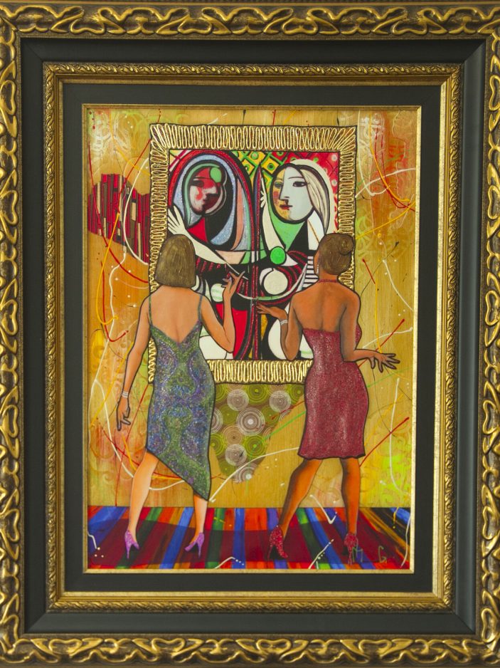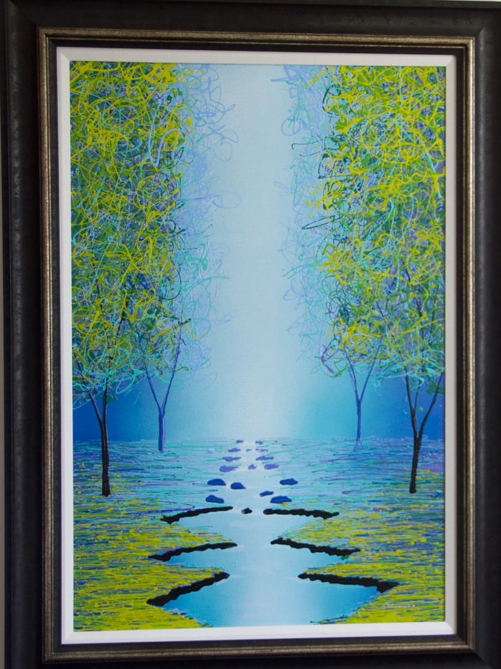 • “Ethereal Emerald” and “Finally Peace” by Michael Romero, best known for his textured, brightly colored paintings created in a style of his own invention, using a copper wire tool with which drizzles hundreds of layers of vivid paint.