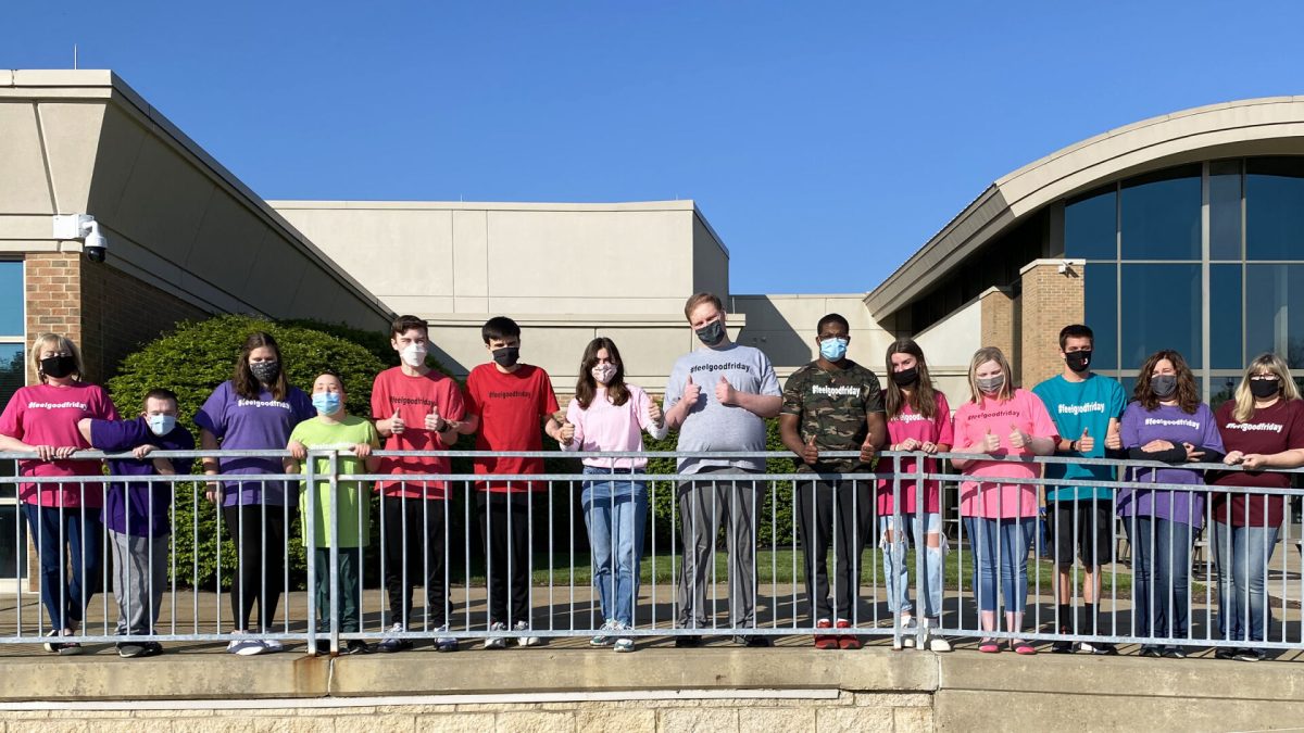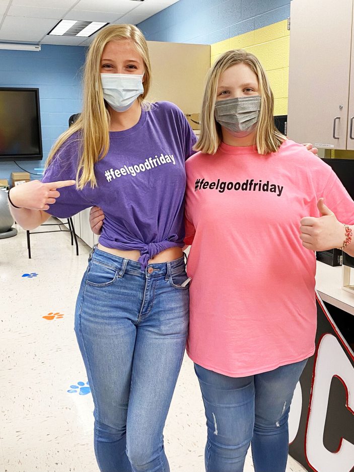 #feelgoodfriday shirts abound outside of Upper St. Clair High School.