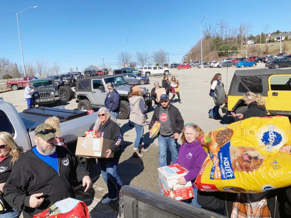 Swihart and her Jeep club met Sunday at a local hair salon and stuffed Jeeps with dog and cat food, collars, bedding, cleaning supplies and other donations.