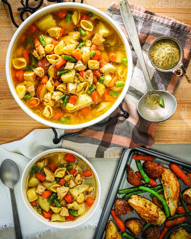 Mexican Street Corn Bowls with Grilled Chicken provide a balance of hearty yet nutritious flavor while taking advantage of the convenience of prepackaged ingredients. Perfect for fall weather, Roasted Chicken and Vegetable Soup requires just three ingredients for a filling meal worth celebrating.