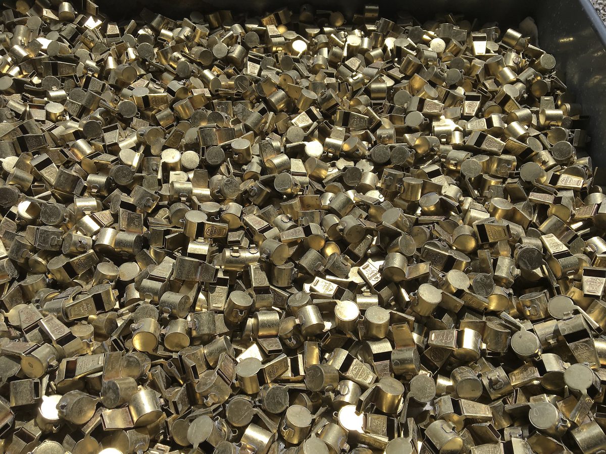 American Whistle encapsulates a century of manufacturing from its vintage but hulking die press to its high-tech, custom-made, robotic soldering machine.