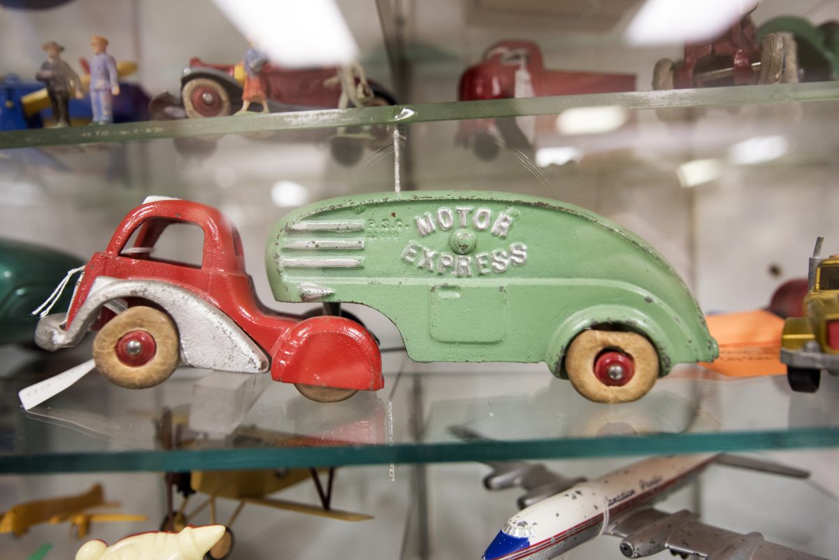 McEntee, a retired special education teacher, first started collecting antique toys after watching a friend, Ed Grzybowski, buy and sell antiques. Grzybowski is the co-owner of the Tri-State Antique Center, which sits next to McEntee’s store on Pike Street. Their stores, which started as a partnership, will soon be closing.