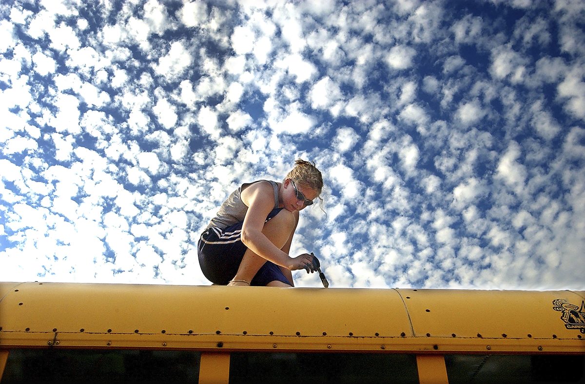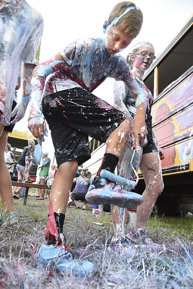 The fair spent somewhere in the neighborhood of $30,000 on this year’s buses, which will represent 12 of the 15 districts in Washington County. Students from each district paint the buses before they are sent to their end. Once they are demolished, the fair sells the buses and the engines for scrap.