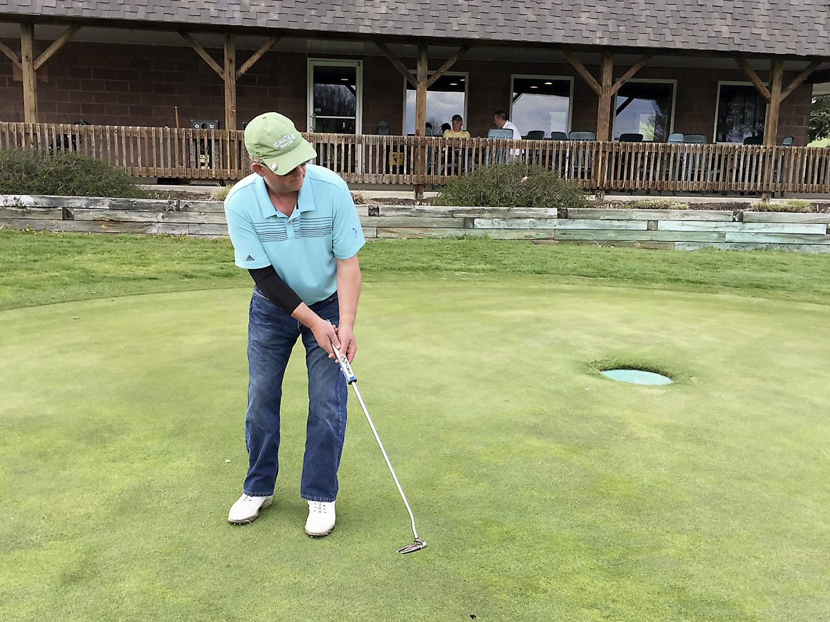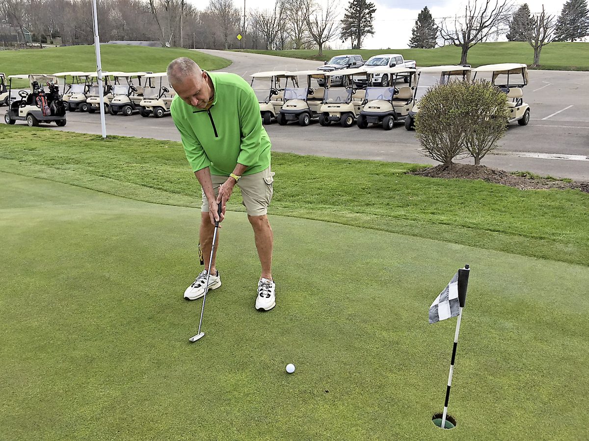 Jerry Ritzer practices putting before a round with the Holy Ghost Golf League at Chippewa Golf Course.