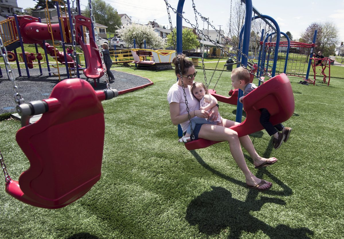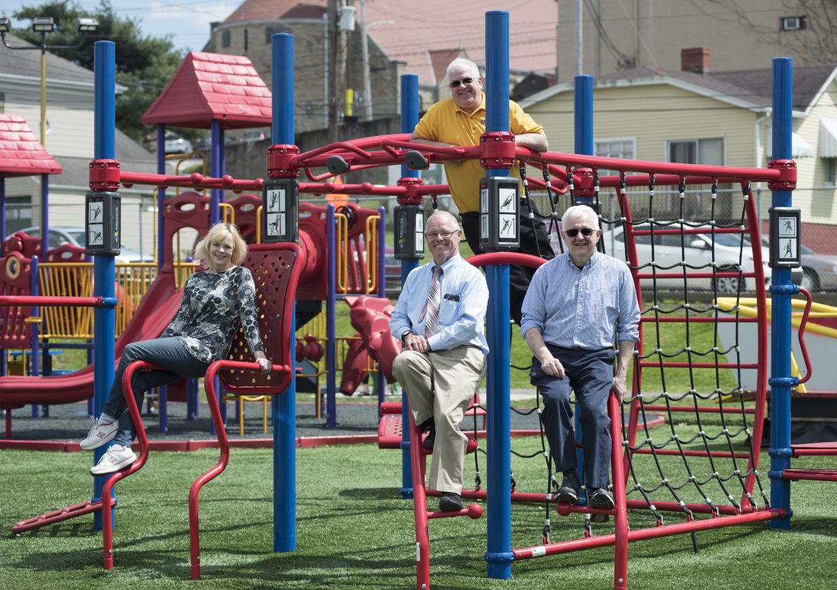 The vision became a reality in 2016. Today, the drugs and crime are gone, and North Belle Vernon now has a beautiful park, complete with a dek hockey arena, soccer field, playground and pavilion. It’s also more than handicap accessible – there is adaptive playground equipment, including a wheelchair-accessible glider, wheelchair swing, adaptive car seat swings and two expression swings that allow a parent and toddler to ride facing each other, all built on safety turf.