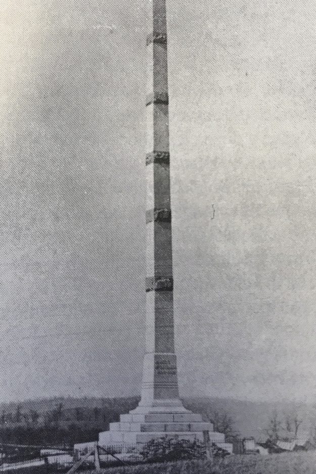 The McCutcheon Monument as it appeared prior to the 1936 tornado that damaged it.