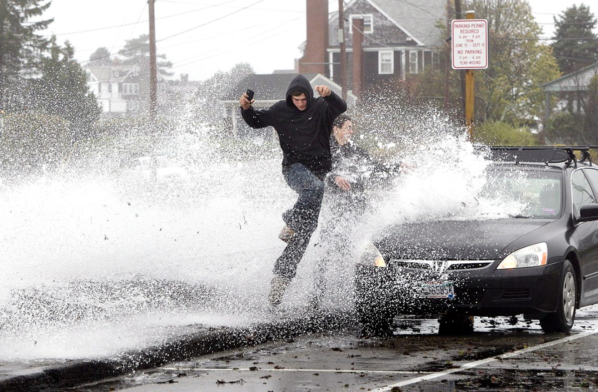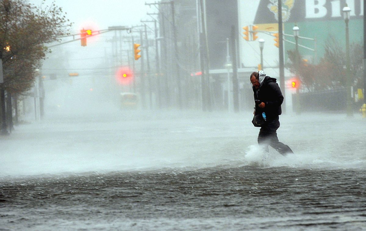 ATLANTIC CITY, N.J. – Superstorm Sandy slammed into the New Jersey coastline with 80 mph winds Monday night and hurled an unprecedented 13-foot surge of seawater at New York City, threatening its subways and the electrical system that powers Wall Street. At least 10 U.S. deaths were blamed on the storm, which brought the presidential campaign to a halt a week before Election Day. Sandy knocked out power to at least 3.1 million people, and New York’s main utility said large sections of Manhattan had been plunged into darkness by the storm. Water pressed into the island from three sides. Just before its center reached land, the storm was stripped of hurricane status, but the distinction was purely technical, based on its shape and internal temperature. It still packed hurricane-force wind, and forecasters were careful to say it remained every bit as dangerous to the 50 million people in its path. As the storm closed in, it smacked the boarded-up big cities of the Northeast corridor – Washington, Baltimore, Philadelphia, New York and Boston – with stinging rain and gusts of more than 85 mph. It also converged with a cold-weather system that turned it into a superstorm, a monstrous hybrid consisting not only of rain and high wind but also snow. Sandy made landfall at 8 p.m. near Atlantic City, which already was mostly under water and saw a piece of its world-famous Boardwalk washed away earlier in the day. Authorities reported a record surge more than 13 feet high at the Battery at the southern tip of Manhattan, from the storm and high tide combined. In an attempt to lessen damage from saltwater to the subway system and the underground electrical network that underlies the city’s financial district, New York City’s main utility cut power to about 6,500 customers in lower Manhattan. But a far wider swath was hit with blackouts caused by flooding and transformer explosions. The subway system was shut down Sunday night, and the stock markets never opened at all Monday. They are likely to be closed today as well. Airlines canceled more than 12,000 flights, disrupting the plans of travelers all over the world, and storm damage was projected at $10 billion to $20 billion, meaning it could prove to be one of the costliest natural disasters in U.S. history. The four deaths were in Maryland, Pennsylvania, Connecticut and New York. Among them were two people killed by falling trees. President Barack Obama and Republican challenger Mitt Romney canceled their campaign appearances at the very height of the race, with just more than a week to go before Election Day. The president pledged the government’s help and made a direct plea from the White House to those in the storm’s path. “When they tell you to evacuate, you need to evacuate,” he said. “Don’t delay, don’t pause, don’t question the instructions that are being given, because this is a powerful storm.” Sandy, which killed 69 people in the Caribbean before making its way up the Atlantic, began to hook left at midday toward the New Jersey coast. The storm lost its status as hurricane because it no longer had a warm core center nor the convection – the upward air movement in the eye – that traditional hurricanes have, but it still was as dangerous as it was when it was considered a hurricane, according to National Hurricane Center spokesman Dennis Feltgen. Pete Wilson, who owns an antiques shop in Cape May, N.J., at the state’s southern tip and directly in Sandy’s path, said the water was 6 inches above the bottom edge of the door. He already had taken a truckload of antiques out but was certain he would take a big hit. “My jewelry cases are going to be toast,” he said. “I am not too happy. I am just going to have to wait and hopefully clean up.” New Jersey Gov. Chris Christie said people were stranded in Atlantic City, which sits on a barrier island. He accused the mayor of allowing them to stay there. With the hurricane roaring through, Christie warned it was no longer safe for rescuers and advised people who didn’t evacuate the barrier islands to “hunker down” until morning. “I hope, I pray, that there won’t be any loss of life because of it,” he said. While the hurricane’s 90 mph winds registered as only a Category 1 on a scale of five, it packed “astoundingly low” barometric pressure, giving it terrific energy to push water inland, said Kerry Emanuel, a professor of meteorology at MIT. And the New York metropolitan apparently got the worst of it, because it was situated on the dangerous northeastern wall of the storm. “We are looking at the highest storm surges ever recorded” in the Northeast, said Jeff Masters, meteorology director for Weather Underground, a private forecasting service. “The energy of the storm surge is off the charts, basically.” Hours before landfall, there was graphic evidence of the storm’s power. A construction crane atop a luxury high-rise in New York City collapsed in the wind and dangled precariously 74 floors above the street. Forecasters said the wind at the top the building may have been close to 95 mph. Off North Carolina, a replica of the 18th-century sailing ship HMS Bounty that was built for the 1962 Marlon Brando movie “Mutiny on the Bounty” went down in the storm, and 14 crew members were rescued by helicopter from rubber lifeboats bobbing in 18-foot seas. Another crew member was found hours later but was unresponsive. The captain was missing. At Cape May, water sloshed over the seawall, and it punched through dunes in other seaside communities. A casino official commented on the damage after Sandy tore away an old section of Atlantic City’s historic boardwalk. “When I think about how much water is already in the streets, and how much more is going to come with high tide tonight, this is going to be devastating,” said Bob McDevitt, president of the main Atlantic City casino workers union. “I think this is going to be a really b