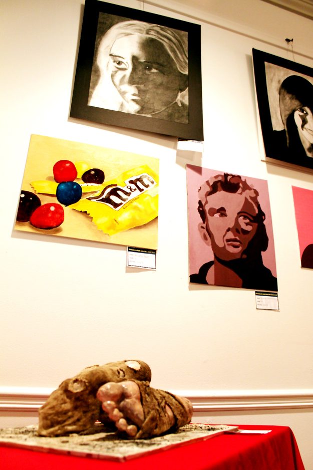 Art students’ work, created throughout this school year, include ceramics, sculpture, drawing, painting and mixed media, some of which are award-winning pieces from the Scholastic Art and Writing Awards and the Carmichaels Women’s Civic Club Art Contest.