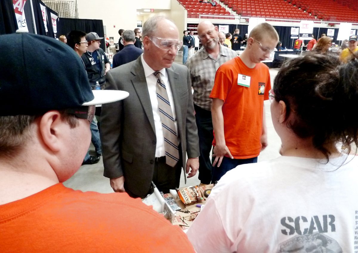 Pennsylvania Education Secretary Ron Tomalis was drawn to the games Friday and took time to visit the Western Area student workshop.