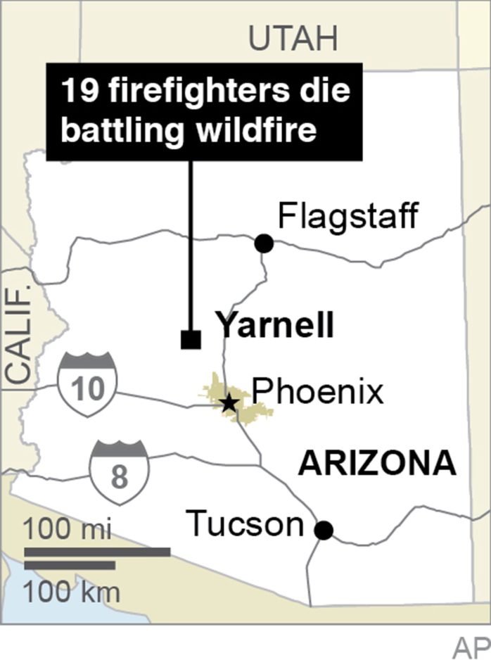 PRESCOTT, Ariz. – With no way out, the 19 elite firefighters did what they were trained to do when trapped by a wildfire: They unfurled their foil-lined, heat-resistant tarps and rushed to cover themselves on the ground.