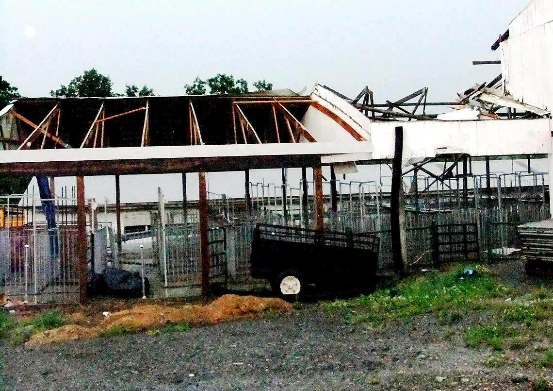 Workers wrangling buses for the upcoming school bus demolition derby saw the sky blacken and a funnel cloud “ripping (the barn roof) off sheet by sheet and wrapping it around a tree on Arden Road,” said Debbie Stephenson, general manager of the Washington County Fairgrounds and Expo Center.