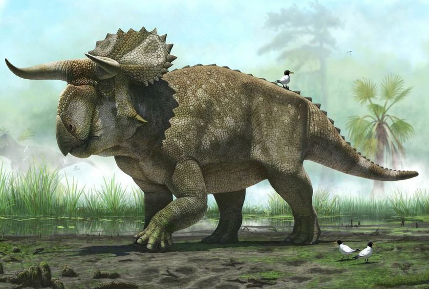 The dinosaur was a wide-bodied plant-eater that grew to 15 feet long and weighed 2 1/2 tons, said Patti Carpenter, spokeswoman for the museum. It is considered unique for its oversized nose and its exceptionally long, curved and forward-pointing horns over the eyes. It also had a low, narrow blade-like horn above the nose.