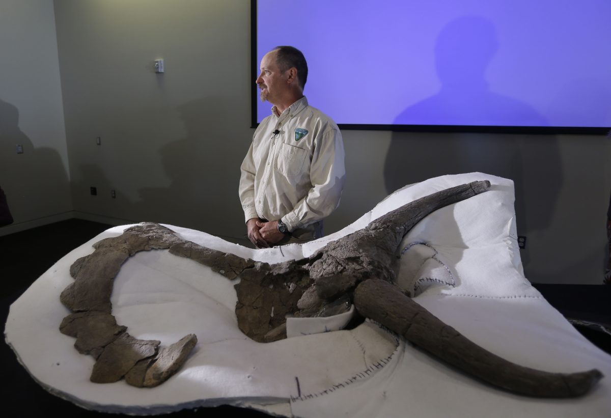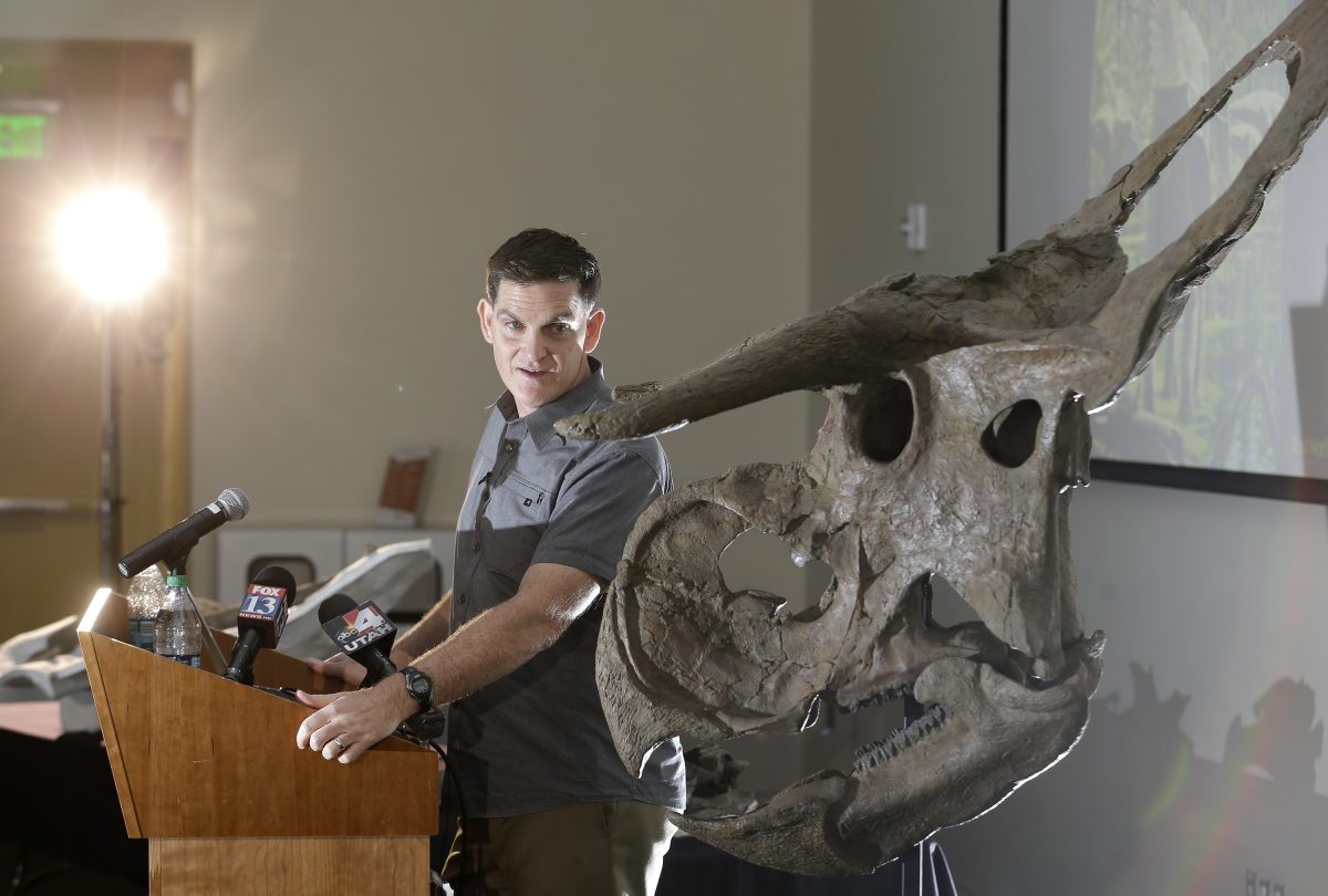 Sampson is now vice president of research and collections at the Denver Museum of Nature & Science. He said researchers don’t believe the large nose of the Nasutoceratops had anything to do with smell, since olfactory receptors were far back in the head.