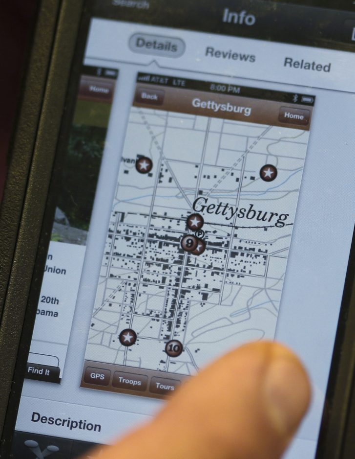 The group has since released 11 free Battle Apps for the iPhone and Android. Guides like Adelman appear in videos in the apps, telling the stories behind the historic sites where smartphone users are standing.