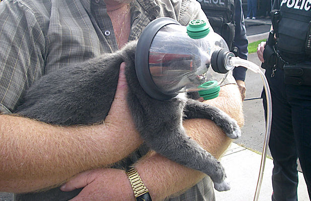 Smoke inhalation affects dogs and cats in much the same way that it impacts people, according to Dr. Paul Volz, a veterinarian with Brush Run Veterinary Clinic in McMurray. “The sooner the patient gets oxygen, the better,” he said. He added that the problems that arise from smoke inhalation are primarily carbon monoxide-related, as CO does not let oxygen onto hemoglobin, and the low oxygen level can cause permanent neurologic issues. “If in a fire, they should get oxygen ASAP, which is why it’s really great that the fire departments are starting to carry the masks on their trucks.”