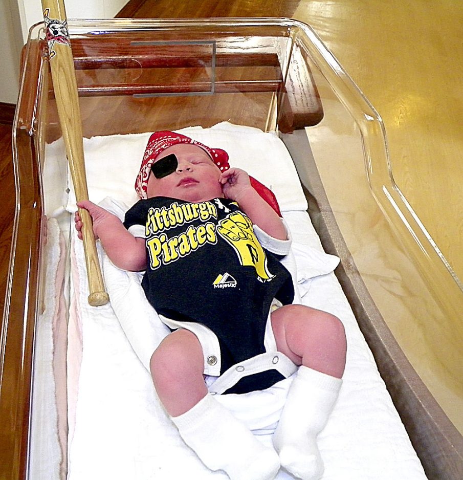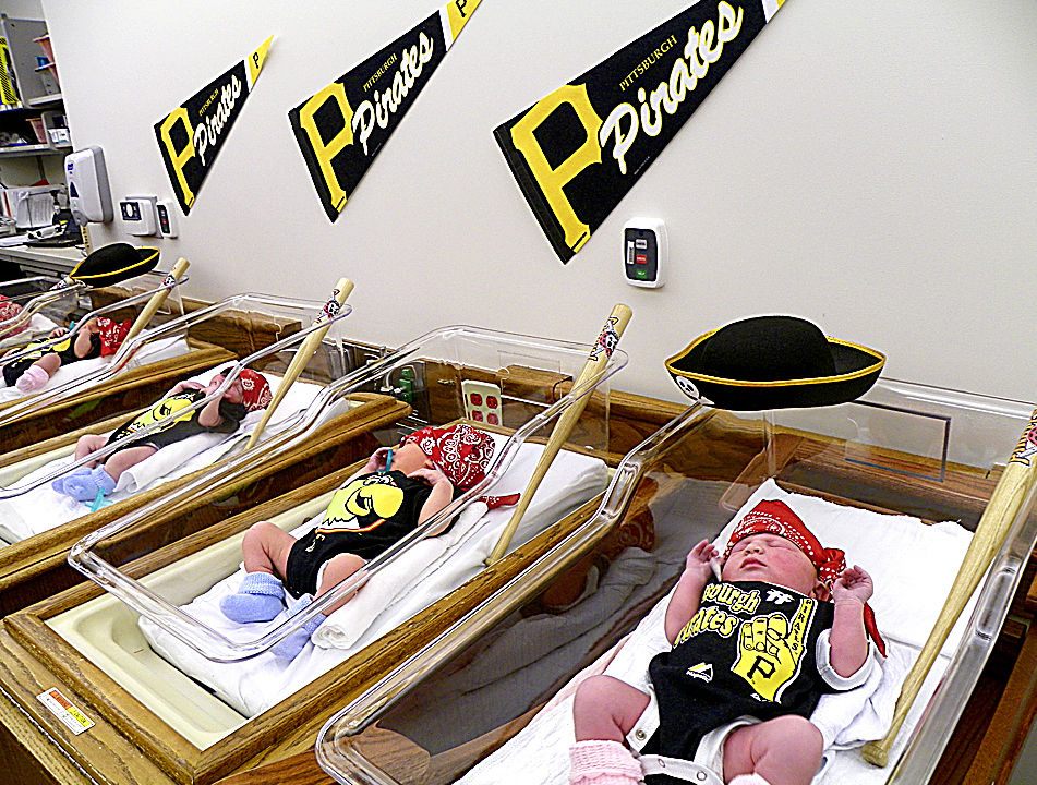 Babies born in the past week at St. Clair Hospital in Mt. Lebanon have already been showing their Pittsburgh pride and supporting the Pirates during the playoffs.