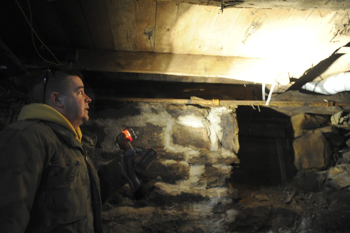 Hixenbaugh believes he found evidence in the floor joists above a crawl space in the Thomas McKeever house suggesting a similarly constructed trap door had been built there into the kitchen floor.