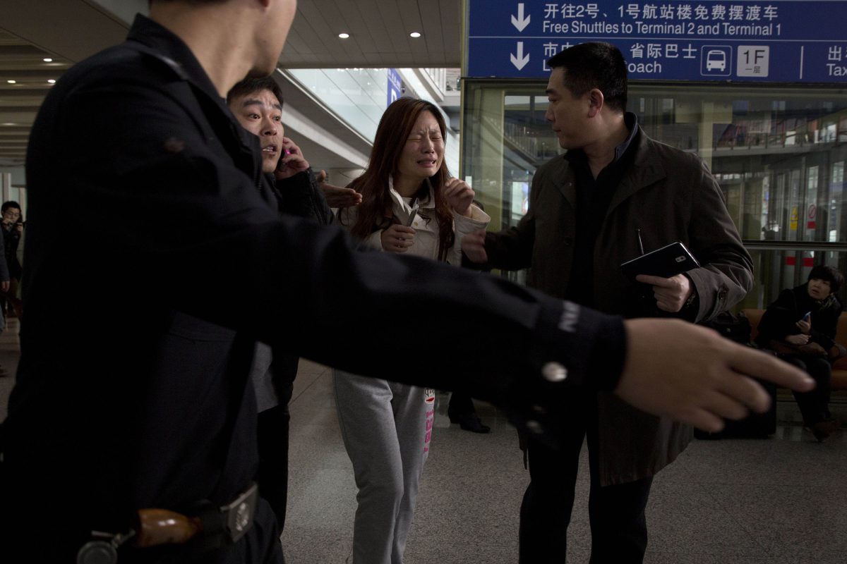 Passengers’ loved ones were escorted into a private area at the hotel, but reporters were kept away. A man in a gray hooded sweatshirt later stormed out complaining about a lack of information. The man, who said he was a Beijing resident but declined to give his name, said he was anxious because his mother was aboard the flight with a tourist group.